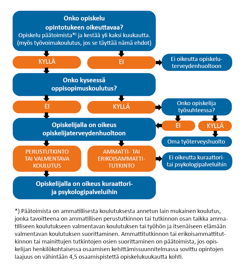 Alla olevasta kaaviosta käy selville, kenelle opiskeluterveydenhuollon ja opiskeluhuollon palvelut kuuluvat.