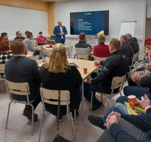 Koulutuspäälliköt Paula Kairinen ja Aleksi Lehikoinen kertoivat kuulijoille Vakiotien toiminnasta ja suunnitelmista sekä tilaisuuden lopuksi kierrättivät osallistujia uusissa tiloissamme. Paikalla tilaisuudessa oli 40 henkilöä; yrittäjiä, Turun ja Liedon työllisyyspalvelujen väkeä sekä Liedon kaupungin ja Novidan toimijoita.