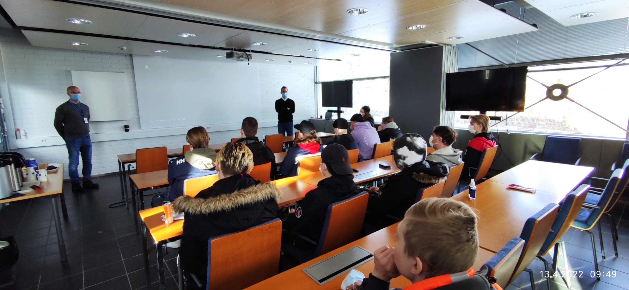 Sähkö- ja automaatioalan opiskelijat opettajien johdolla olivat tutustumassa PEMA Base Camp -koulutusohjelmaan 13.4.2022. Esittelijöinä toimivat Pemamek Oy:n Jesse Viitanen ja Risto Rehakka. https://pemamek.com/fi/yleinen-fi/pemamekin-ja-novidan-koulutusohjelma-pema-base-camp-opiskelijoille/. Koulutusohjelmasta kiinnostuneiden opiskelijoiden vanhemmat ovat tervetulleita tutustumistilaisuuteen Pemamekille 21.4. klo 17 alkaen. PEMA Base Camp on ohituskaista työelämään – koulutusohjelmaan haku on auki 4.5.2022 asti. Lisätietoja koulutusohjelmasta antavat koulutuspäälliköt Iiro Aaltonen, Kari Valtanen ja apulaisrehtori Jouko Tevasaari.