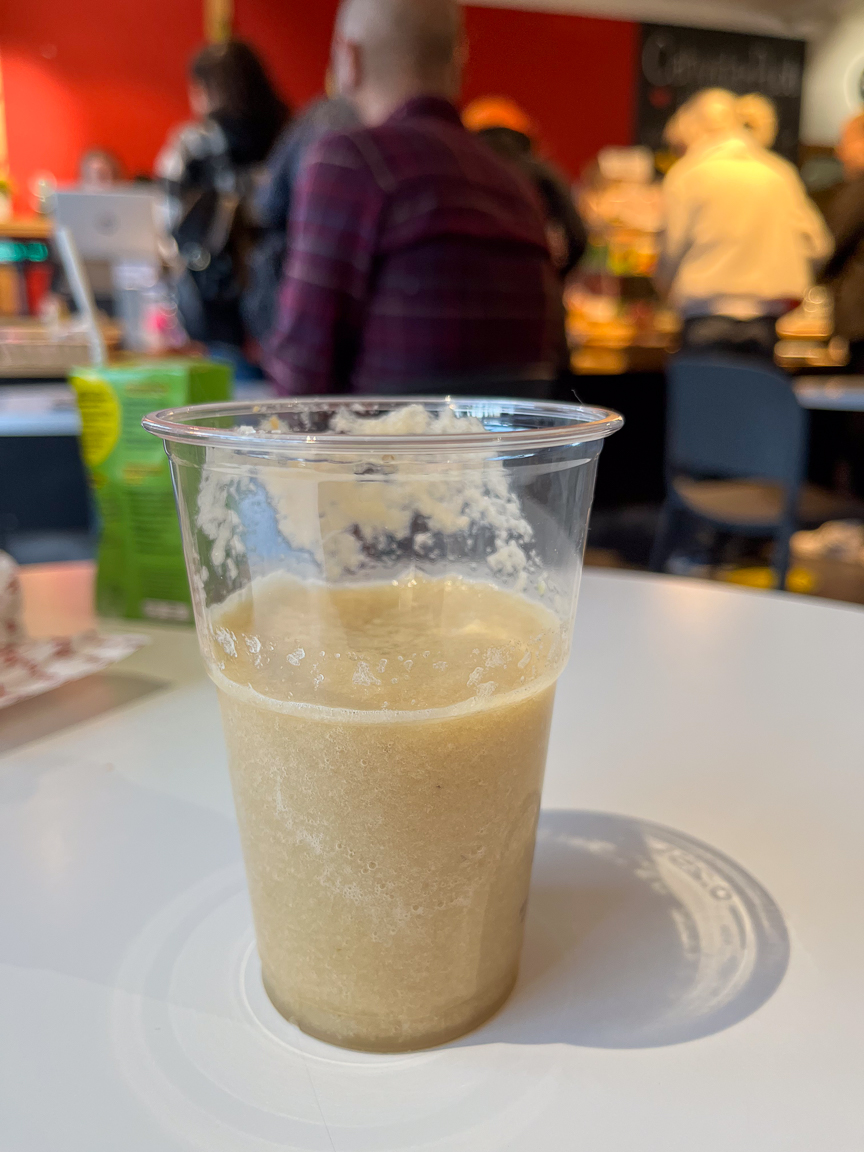 Ruokajuomana paikallinen vahvasti humaloitu kuiva omenasiideri.
