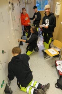 Toisen vuosiluokan sähköalan opiskelijat harjoittelevat uppoasennuksia Loimaan työsalissa.